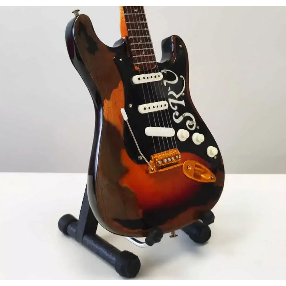 Exkluzivní miniatura elektrické kytary, vyrobená ze dřeva se všemi detaily nástroje. Krásné ruční detailní zpracování. Délka kytary cca 25 cm, šířka 7 - 9 cm. Včetně stojánku. V dárkové krabičce. Skvělý dárek na ozdobu pokoje nebo pracovního stolu pro zapáleného kytaristu. Model Stevie Ray Vaughan Fender Stratocaster 3SB.