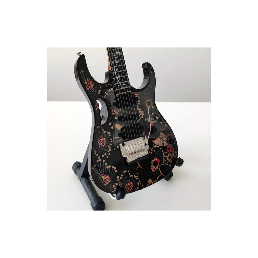 Exkluzivní miniatura kytary, vyrobená ze dřeva se všemi detaily nástroje. Krásné ruční detailní zpracování. Délka kytary cca 25 cm, šířka 7 - 9 cm. Včetně stojánku. V dárkové krabičce. Skvělý dárek na ozdobu pokoje nebo pracovního stolu pro zapáleného kytaristu. Model Steve Vai Ibanez JEM 77 Prestige Floral Fabric.