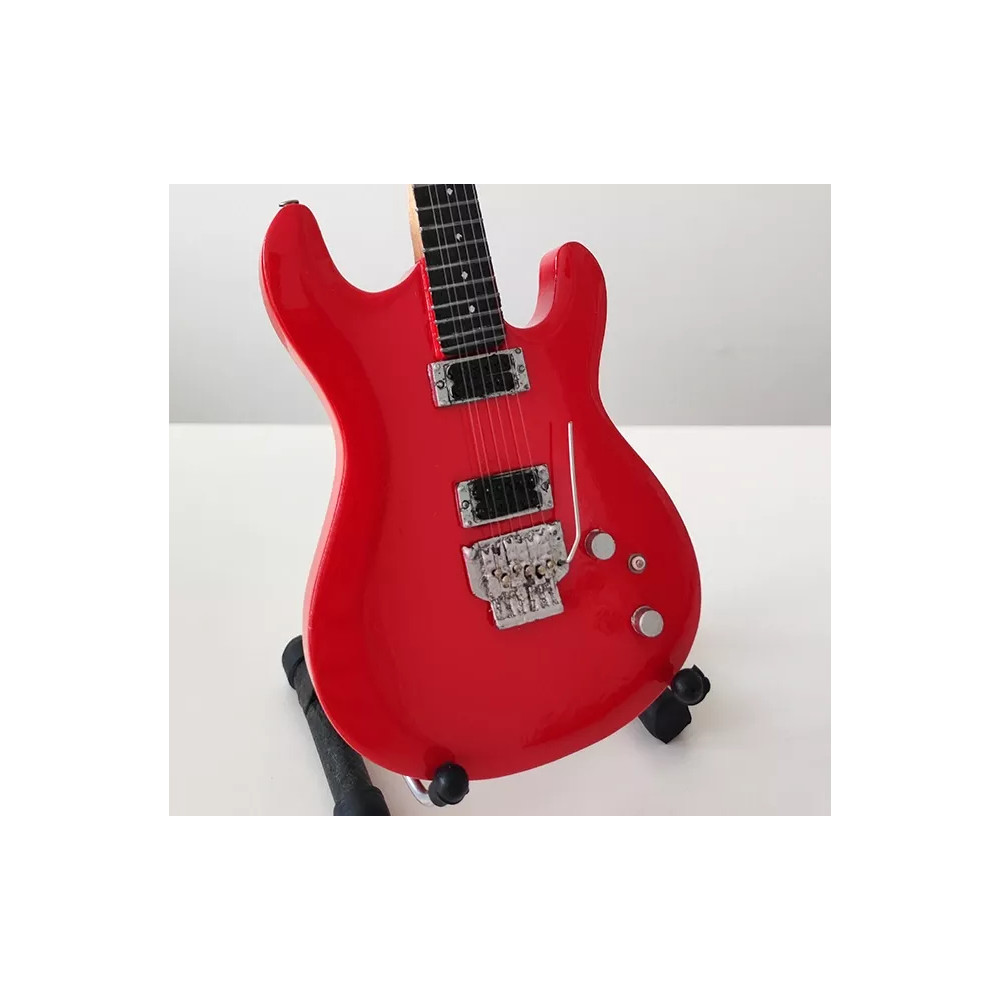 Exkluzivní miniatura kytary, vyrobená ze dřeva se všemi detaily nástroje. Krásné ruční detailní zpracování. Délka kytary cca 25 cm, šířka 7 - 9 cm. Včetně stojánku. V dárkové krabičce. Skvělý dárek na ozdobu pokoje nebo pracovního stolu pro zapáleného kytaristu. Model Joe Satriani Ibanez JS1200 Signature.