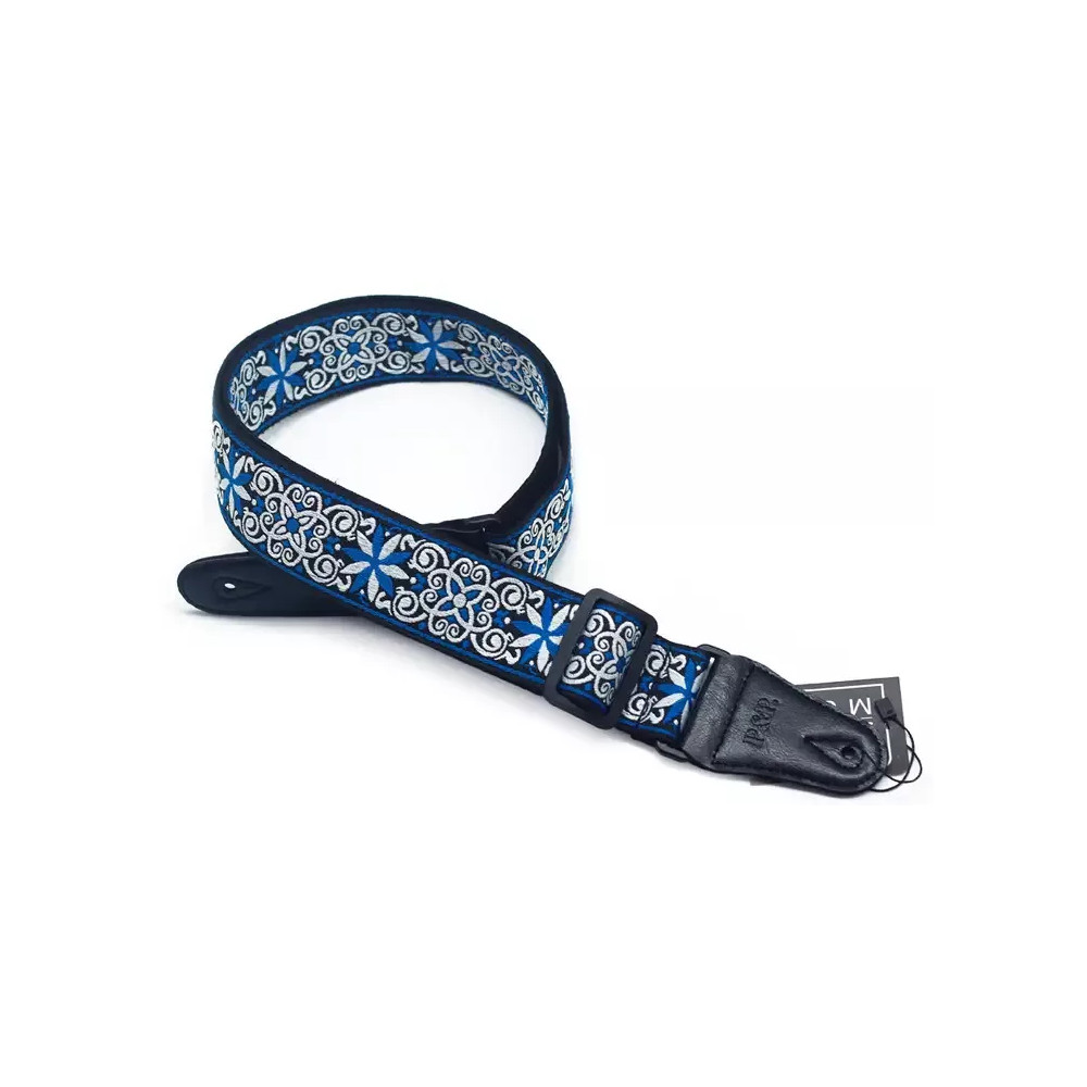 Kytarový textilní řemen P&P Music AGSP-250 LBL ve světle modrém retro designu. Šířka řemenu je 5 cm, maximální délka řemenu je 120 cm. Materiál řemenu je bavlněná tkanina. Hmotnost je cca 200 g.