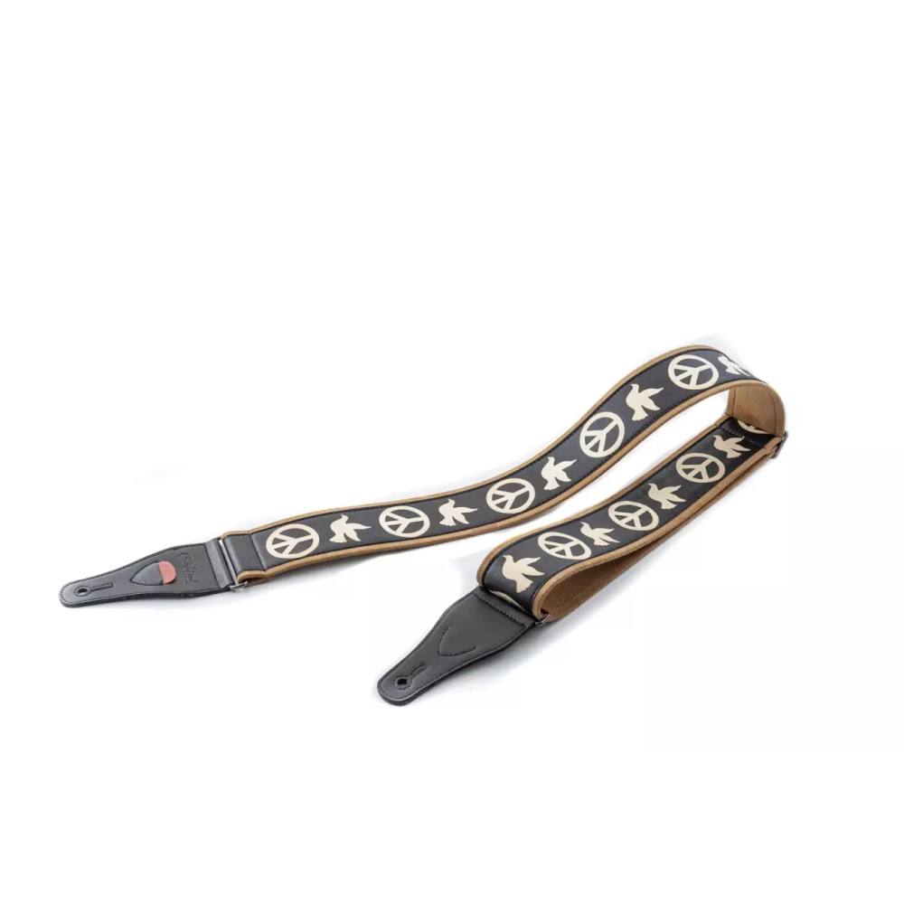 RightOn! kytarový řemen Legend Peace & Dove Vegan Guitar & Bass Strap je perfektní, stylový ale i funkční doplněk k většině akustických a elektrických kytar, který je replikou ikonického řemenu používaného Neilem Youngem. Nese charakteristické gravírování se symboly míru a holubice. Je také vybaven podšívkou proti klouzání a 5mm polstrováním. Nabízí možnost nastavení délky v rozmezí 90 až 150 cm, je široký 6 cm, odolný a neuvěřitelně komfortní. Řemeny Groove Strap jsou vyrobeny z materiálu 'Vegana', směsi syntetických, textilních a přírodních vláken a neobsahují žádné části zvířat. Je vybaven vnějším zásobníkem na trsátka. Výroba Španělsko. Kompletní ruční výroba. Provedení Peace & Doves (černo-béžovo-bílý). Všechny řemeny RightOn! se vyznačují následujícími vlastnostmi: Exkluzivní, inovativní RightOn! Adjustment Systém (RAS) s nejširším rozsahem úpravy délky řemenu na trhu. Nejlepší ramenní opora: podšívka je designována, testována a kontrolována, tak že se řemen nesmeká ani nelepí. Nejméně jeden držák na trsátko integrovaný do řemenu. Pouze ten nejkvalitnější latex pro polstrování řemenu zajistí komfort po celou dobu vystoupení. Řemeny Race Strap jsou vyrobeny z materiálu 'Vegana', směsi syntetických, textilních a přírodních vláken a neobsahují žádné části zvířat. Již od roku 2009, firma RightOn! navrhuje a vyrábí kytarové řemeny pro kytaristy a basáky - s cílem nabídnout i těm fyzicky nejvíce náročným hráčům řemeny, které vydrží nápor energie mnoha celosvětových turné. Specifikace Hlavní materiál: Vegana (bez zvířecích částí) Podšívka: mikrovlákno Polstrování: 5 mm Série: Steady Kolekce: Standard Plus Design: Legend Neil Young Vhodné pro: kytara Včetně držáku na trsátka Šířka: 60 mm Délka: 900 - 1500 mm Barva: Peace & Doves (černo-béžovo-bílý) Ruční výroba Španelsko Připravil PJ