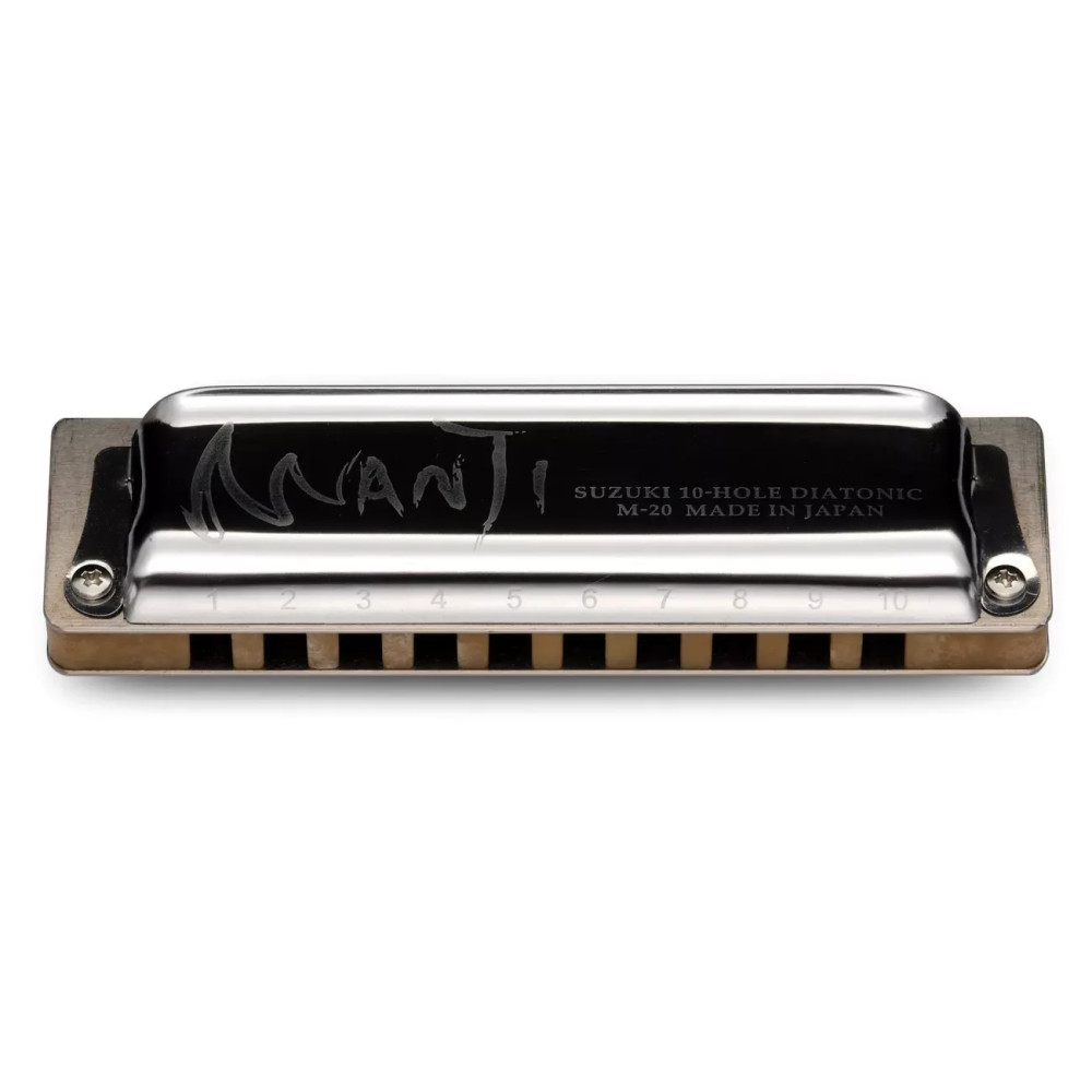 Set sedmi foukacích harmonik Suzuki Manji M-20-7SET v ladění C, G, A, D, E, F a Bb s látkovým pouzdrem na 8 harmonik 10HC-8. Suzuki Manji M-20 jsou harmoniky s výjimečně silným a čistý zvukem a snadným ohýbáním tónů. Nabízejí vynikající kvalitu a provedení. Jsou to diatonické harmoniky a mají 10 kanálků. Jsou vyrobeny s ocelovým krytem a unikátním kompozitovým hřebenem simulujícím vlastnosti dřeva. Jazýčky jsou fosforbronzové. Rozměry jedné harmoniky jsou 101 x 27 x 18 mm, a hmotnost je 65 g. Ladění V setu jsou obsažena tato ladění: C, G, A, D, E, F a Bb. Ladění nástroje je prováděno pomocí počítačem řízených laserů. Kryt těla Harmonika je vyrobena s ocelovým krytem v klasickém designu custom nástrojů. Na přání bluesových a rockových hráčů na harmoniky je zadní strana nástroje zcela otevřená a umožňuje skvělou projekci zvuku. Velké otvory na bocích nástroje umožňují hráči přímo dobře slyšet svůj nástroj. Suzuki je první výrobce harmonik, který přesunul jedinný upevňovací šroub na předek hřebenu, kde zajistí maximální tlak a tím i vzduchotěsnost nástroje. Hřeben Nástroj je vybaven revolučním kompozitovým hřebebem simulujícím vlastnosti dřeva, který však není negativně ovlivňován vlhkostí. Nabízí tak zvuk velmi podobný nástrojům s dřevěným hřebebem, ale bez obtíží spojených s vlhkostí. Výsledný zvuk je také silnější než u jiných nástrojů s plastovým hřebenem. Jazýčky a plátky Firma Suzuki si získala celosvětové uznání za přesnost a odolnost svých jazýčků. Jazýčky a plátky této harmoniky jsou fosforbronzové. Díky nově vyvinuté technologii upevnění jazýčků na plátky je dosaženo nejjemnější rozestupu mezi jazýčkem a jeho slotem mezi světovými výrobci. Precizně vyvinuté profily a délky jazýčků se také podílejí na silnějším a plnějším zvuku s možností snadného ohýbání tónů a s delší životností. Náhradní plátky lze v našem eshopu dokoupit samostatně pod označením RP-M-20 Manji v mnoha různých laděních. Harmoniky Suzuki Manji lze zakoupit také ve dvou setech, v durových Low laděních a v různých mollových, country a seventh laděních. Set M-20-3SET obsahuje tři harmoniky v laděních C, G, A v luxusním pevném tvarovaném pouzdře. Set M-20-7SET obsahuje sedm harmonik v laděních C, G, A, D, E, F a Bb v parádním látkovém pouzdře 10HC-8. Hráči na Manji SuzukiBilly Branch (USA)Jason Ricci (USA)Brandon Oneal Bailey (USA)Filip Jers (Švédsko) VideoVideo recenze a semináře o harmonice Manji Suzuki najdete například zde: https://www.youtube.com/watch?v=aXbjnFtdY8o https://www.youtube.com/watch?v=QjojKRAX1jw https://www.youtube.com/watch?v=0Jv8hZXiScc&t=2s Připravil PJ