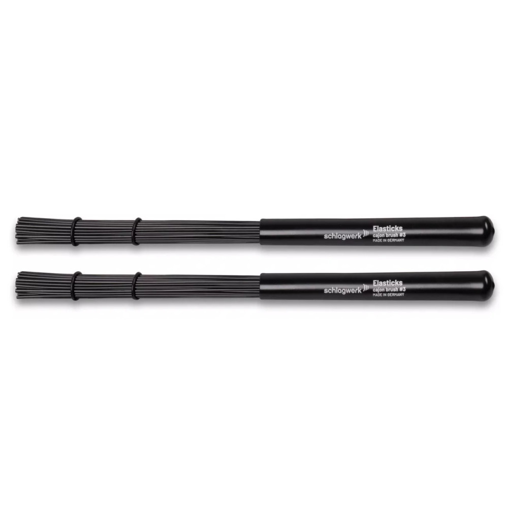 Schlagwerk BRC03 Cajon Brush #3 jsou metličky pro hru na cajon ale i pro hru na klasické bicí. Jsou vybaveny silnějšími kulatými nylonovými štětinami v černé barvě. Zvláštností metliček Elastick je flexibilní rukojeť, která umožňuje zcela nový pocit při hraní, a také techniku ??hry v obráceném směru. Pomocí dodaných kroužků lze zvuk upravovat v důsledku rozprostření vláken metliček od jemného po intenzivní. Nyní jsou tyto metličky vyráběny přímo v Německu. Délka metliček je 330 mm, průměr je 19 mm, hmotnost 130 gramů. Materiál vláken: nylon, černý Držák: pogumovaný Délka: 330 mm Průměr: 19 mm Připravil PJ