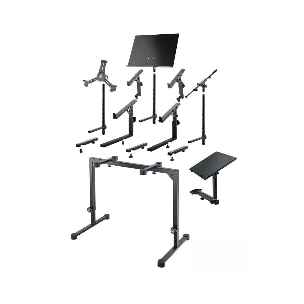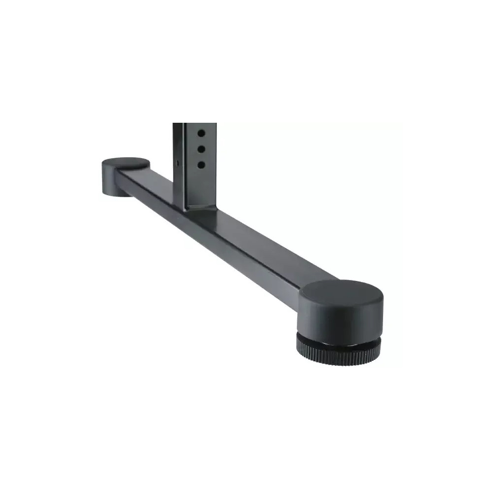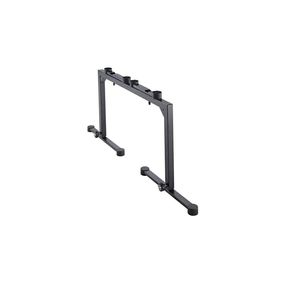 König & Meyer 18810 Omega Table style je klávesový stojan s kompaktní ocelovou konstrukcí. Je navíc vybaven širokými nohami a velkými koncovkami, kterými lze vyrovant nerovnosti podlahy a tak z něj dělají stabilní stojan pro nástroje až do hmotnosti 80 kg. Stojan je výškově stavitelný pomocí pružinového mechanizmu v obo nohách. Podpůrná ramena lze nastavit tak, aby vyhovovala různým typům nástrojů. K dispozici jsou i čtyři úchyty na kabely. Stojan lze zkombinovat s rameny 18811 pro druhé patro a 18822 pro třetí parto nástrojů. Specifikace Výška: 600 - 1020 mm Maximální nosnost: 80 kg Šířka podpory: 180 - 790 mm Hloubka podpory: 345 mm Rozměry základny: 1050 x 575 mm Materiál: ocel Hmotnost: 9,5 kg Barva: černá Připravil PJ