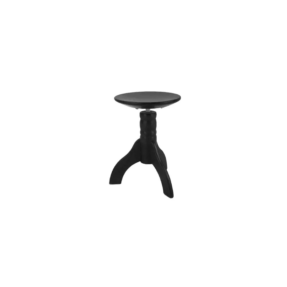 Dřevěná otočná stolička, 3 nohá. Materiál dřeva - jasan, buk. Matice použitá v podvozku židle je litinová, šroub na sedáku ocelový. Výškově nastavitelná v rozmezí 45-65 cm. Sedák : masivní dřevěný sedák. Průměr sedáku 32 cm. Barevné provedení : černý mat.