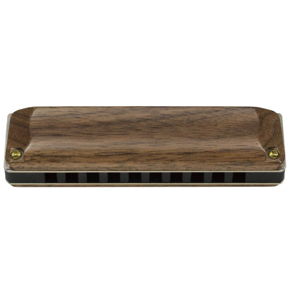 Suzuki M-20W Manji Wood v ladění C je diatonická harmonika s dřevěnými kryty. Manji M-20W má stejný silný pocit při foukání jako Manji M-20, ale vyznačuje se jemnějším tónem s potlačenými výškami. Stejně jako Manji M-20 a Manji Sky M-20S je i M-20W naladěna „kompromisním“ laděním, které zdůrazňuje rezonanci akordů, což je užitečné při hraní blues a rocku s mnoha vampovými tóny. Jazýčky jsou fosforbronzové. Rozměry nástroje jsou 100 x 27 x 20 mm, a hmotnost je 62 g. Kryt klasické Manji M-20 je vyroben z kovu, ale dřevěné kryty M-20W také reprodukují dobrý pocit při hře na rty a do rukou. Materiál krycích desek a vnitřní tvar M-20W a M-20 se však velmi liší, a proto se výrazně liší i tón. Můžete si také užít hraní na dvou modelech, které mají podobnou hratelnost a pocit, ale odlišné tóny. LaděníK dispozici je široká paleta různých ladění: C, G, A, D, E, F, Bb. Ladění nástroje je prováděno pomocí počítačem řízených laserů. Tón a změny vytvořené dřevěnými kryty Vzhledem k hmotnosti a tvrdosti dřevěného krytu a také k prostoru vytvořenému ve dřevě se vyznačuje jemným tónem s potlačenými výškovými složkami. Jedinečnost tónu pocítíte, zejména při hraní dlouhých tónů nebo při perkusních projevech. Postupem času se barva dřevěných krytů může změnit nebo se stát mírně lesklejší, což z něj dělá zcela jedinečný nástroj s vlastní osobností! Dalším okouzlujícím prvkem modelu dřevěných krytů je změna tónu v průběhu času, neboli jinými slovy, nástroj roste s vámi. Plátky a ladění M-20W používá stejné plátky a ladění jako klasický M-20. Vyznačuje se silným a hlubokým zvukem se širokým dynamickým rozsahem a laděním, které zdůrazňuje rezonanci akordů, což je užitečné při hraní blues a rocku s častým opakováním motivů. M-20W se doporučuje těm, kteří hledají jemnější tón M-20W se vyznačuje jemnějším tónem s dřevěnými kryty, které potlačují výšky. Doporučuje se pro hraní melodičtějších skladeb, balad, pomalejších skladeb nebo když je v popředí zpěvák. Klasický Manji M-20 se doporučuje těm, kteří hledají agresivnější tón Díky svému dynamickému a agresivnímu tónu se M-20 doporučuje pro těžké blues a rock, kde chcete dosáhnout výraznějšího tónu. Svou přítomnost cítí v písních, kde chcete podat silný výkon. Hřeben - materiál podobný dřevu M-20W má stejné tělo jako klasický Manji M-20, vyrobené z pryskyřice smíchané s vlákny extrahovanými ze stromů, čímž se dosahuje jak dřevěného tónu, tak odolnosti plastu. Masivní tělo vyztužené dřevěnými vlákny vytváří teplý zvuk, který se liší od tónu vytvářeného standardním plastovým tělem. Masivní tělo vyztužené dřevěnými vlákny přenáší zvukové vibrace z plátků harmoniky efektivněji bez ztrát ve srovnání s tělem vyrobeným z plastu. Kromě toho se nikdy nebudete muset obávat zkreslení vlhkostí, což je tradičně běžný problém u dřevěných harmonik. Reprodukujte klasický styl Manji M-20 s dřevěnými kryty Kryt klasické MANJI M-20 je vyroben z kovu, ale dřevěné kryty M-20W také reprodukují dobrý pocit při hře na rty a do rukou. Materiál krytů a vnitřní tvar M-20W a M-20 se však velmi liší, a proto se výrazně liší i tón. Můžete si také užít hraní na dvou modelech, které mají podobnou hratelnost a pocit, ale odlišné tóny. Příslušenství Součástí nástroje je kvalitní a odolné, polstrované plastové pouzdro, návod na péči o nástroj a tabulka tónů. Video Porovnání tří modelů Suzuki Manji - originální M-20 s kompozitním hřebenem, novou M-20S Sky s novými plátky pro snadnější hru a M-20W Wood s dřevěným krytem pro temnější zvuk. Specifikace M-20W Manji Wood Diatonická foukací harmonika 10 kanálků Ladění: C Kryt: ořech Hřeben: kompozit Plátky: mosazné, 0,9 mm Jazýčky: fosforbronzové Pouzdro: plastové Rozměry nástroje: 100 x 27 x 20 mm Hmotnost 62 g (104 g včetně pouzdra) Náhradní plátky lze zakoupit pod označením RP-M-20 Manji Výroba: Japonsko Připravil PJ