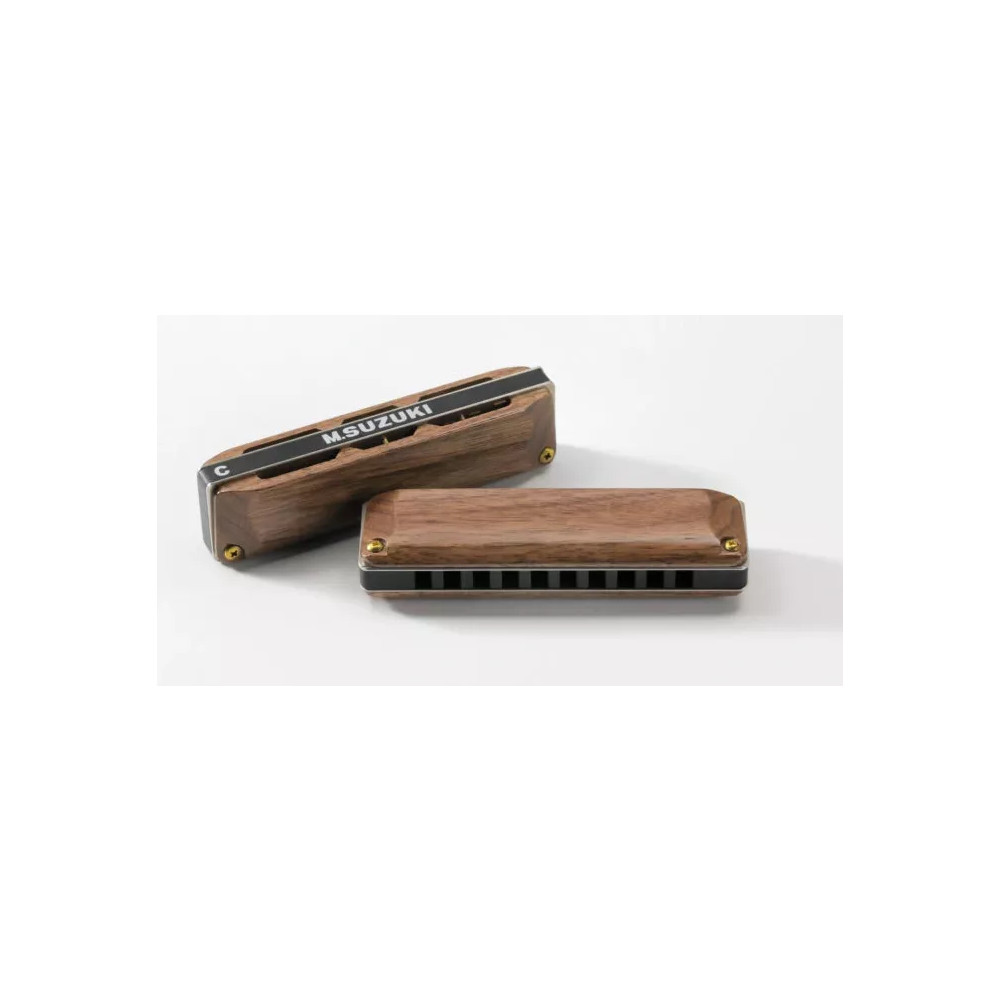 Suzuki M-20W Manji Wood v ladění G je diatonická harmonika s dřevěnými kryty. Manji M-20W má stejný silný pocit při foukání jako Manji M-20, ale vyznačuje se jemnějším tónem s potlačenými výškami. Stejně jako Manji M-20 a Manji Sky M-20S je i M-20W naladěna „kompromisním“ laděním, které zdůrazňuje rezonanci akordů, což je užitečné při hraní blues a rocku s mnoha vampovými tóny. Jazýčky jsou fosforbronzové. Rozměry nástroje jsou 100 x 27 x 20 mm, a hmotnost je 62 g. Kryt klasické Manji M-20 je vyroben z kovu, ale dřevěné kryty M-20W také reprodukují dobrý pocit při hře na rty a do rukou. Materiál krycích desek a vnitřní tvar M-20W a M-20 se však velmi liší, a proto se výrazně liší i tón. Můžete si také užít hraní na dvou modelech, které mají podobnou hratelnost a pocit, ale odlišné tóny. LaděníK dispozici je široká paleta různých ladění: C, G, A, D, E, F, Bb. Ladění nástroje je prováděno pomocí počítačem řízených laserů. Tón a změny vytvořené dřevěnými kryty Vzhledem k hmotnosti a tvrdosti dřevěného krytu a také k prostoru vytvořenému ve dřevě se vyznačuje jemným tónem s potlačenými výškovými složkami. Jedinečnost tónu pocítíte, zejména při hraní dlouhých tónů nebo při perkusních projevech. Postupem času se barva dřevěných krytů může změnit nebo se stát mírně lesklejší, což z něj dělá zcela jedinečný nástroj s vlastní osobností! Dalším okouzlujícím prvkem modelu dřevěných krytů je změna tónu v průběhu času, neboli jinými slovy, nástroj roste s vámi. Plátky a ladění M-20W používá stejné plátky a ladění jako klasický M-20. Vyznačuje se silným a hlubokým zvukem se širokým dynamickým rozsahem a laděním, které zdůrazňuje rezonanci akordů, což je užitečné při hraní blues a rocku s častým opakováním motivů. M-20W se doporučuje těm, kteří hledají jemnější tón M-20W se vyznačuje jemnějším tónem s dřevěnými kryty, které potlačují výšky. Doporučuje se pro hraní melodičtějších skladeb, balad, pomalejších skladeb nebo když je v popředí zpěvák. Klasický Manji M-20 se doporučuje těm, kteří hledají agresivnější tón Díky svému dynamickému a agresivnímu tónu se M-20 doporučuje pro těžké blues a rock, kde chcete dosáhnout výraznějšího tónu. Svou přítomnost cítí v písních, kde chcete podat silný výkon. Hřeben - materiál podobný dřevu M-20W má stejné tělo jako klasický Manji M-20, vyrobené z pryskyřice smíchané s vlákny extrahovanými ze stromů, čímž se dosahuje jak dřevěného tónu, tak odolnosti plastu. Masivní tělo vyztužené dřevěnými vlákny vytváří teplý zvuk, který se liší od tónu vytvářeného standardním plastovým tělem. Masivní tělo vyztužené dřevěnými vlákny přenáší zvukové vibrace z plátků harmoniky efektivněji bez ztrát ve srovnání s tělem vyrobeným z plastu. Kromě toho se nikdy nebudete muset obávat zkreslení vlhkostí, což je tradičně běžný problém u dřevěných harmonik. Reprodukujte klasický styl Manji M-20 s dřevěnými kryty Kryt klasické MANJI M-20 je vyroben z kovu, ale dřevěné kryty M-20W také reprodukují dobrý pocit při hře na rty a do rukou. Materiál krytů a vnitřní tvar M-20W a M-20 se však velmi liší, a proto se výrazně liší i tón. Můžete si také užít hraní na dvou modelech, které mají podobnou hratelnost a pocit, ale odlišné tóny. Příslušenství Součástí nástroje je kvalitní a odolné, polstrované plastové pouzdro, návod na péči o nástroj a tabulka tónů. Video Porovnání tří modelů Suzuki Manji - originální M-20 s kompozitním hřebenem, novou M-20S Sky s novými plátky pro snadnější hru a M-20W Wood s dřevěným krytem pro temnější zvuk. Specifikace M-20W Manji Wood Diatonická foukací harmonika 10 kanálků Ladění: G Kryt: ořech Hřeben: kompozit Plátky: mosazné, 0,9 mm Jazýčky: fosforbronzové Pouzdro: plastové Rozměry nástroje: 100 x 27 x 20 mm Hmotnost 62 g (104 g včetně pouzdra) Náhradní plátky lze zakoupit pod označením RP-M-20 Manji Výroba: Japonsko Připravil PJ