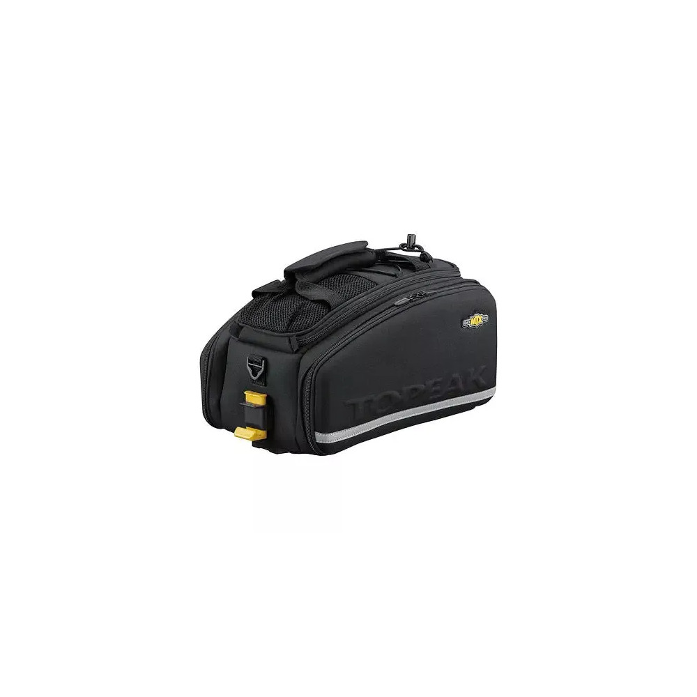 Topeak MTX TRUNK Bag EXP je brašna na zadní nosič, kterou lze dle libosti rozšiřovat její objemovou kapacitu. Prostor je dělen na jednu hlavní část a dvě bočnice. Brašna kombinuje tvarově stálý materiál s pružnou a odolnou textilii Denier 600. Brašna je vhodná pro všechny nosiče Topeak se systémem MTX QuickTrack™ a bočnicemi.