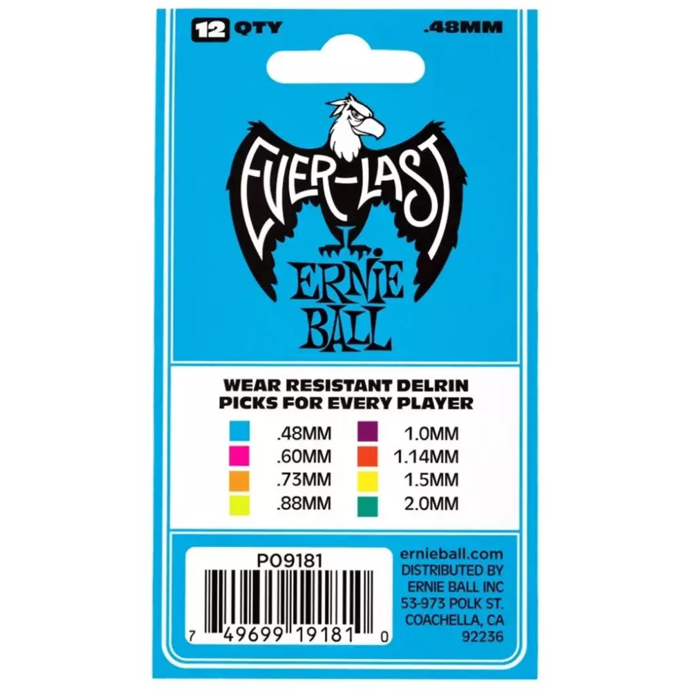 Ernie Ball Everlast Picks .48 mm jsou kytarová trsátka vyrobená z vysoce odolného plastu Delrin s neklouzavým povrchem pro komfortní pocit ze hry. Jsou dostupné v osmi různých tloušťkách a osmi různých Slinky barvách pro všechny typy hráčů. Síla trsátka je 0,48 mm. Připravil PJ