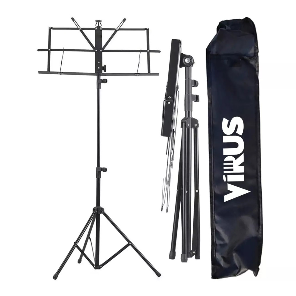 Virus VMSF1 BK je skládací notový stojan, který je lehký a snadno přenosný. Je to kvalitní, odolný, kovový stojan v černém provedení, který vám bude sloužit po mnoho let. Součástí dodávky je i černé látkové pouzdro s řemenem pro nošení přes rameno. Výšku stojanu lze nastavit v rozmězí 54 až 123 cm. Hmotnost stojanu je pouhých 1,3 kg. Jedná se o kvalitní, lehký, snadno přenosný a odolný stojan. Připravil PJ