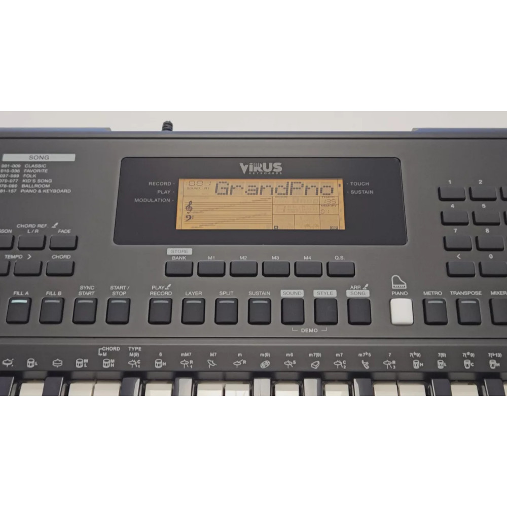 Virus VRS 200 SET2 je set kláves s povlakem a stojanem. Digitální keyboard pro začínající hráče s 61 dynamickými klávesami, doprovodnými styly a možností připojení mikrofonu. Nabízí 585 zvukových rejstříků, 202 doprovodů a 157 skladeb pro výuku i cvičení hry, navíc si můžete nahrát i jednu vlastní skladbu. K dispozici je také USB vstup pro připojení nástroje k počítači nebo k dalším MIDI zařízením. Součástí dodání je plastový notový stojánek, napájecí adaptér zdarma a český překlad uživatelského manuálu. Nástroj umožňuje i napájení a hru pomocí baterií. Součástí setu je klávesový povlak Armour KBBXS61 a klávesový stojan Virus VKB1. Hrajte a zpívejte. S Virus VRS 200 na to máte!Virus VRS 200 je všestranný studentský digitální keyboard, který nabízí množství zvukových rejstříků, doprovodných stylů, skladeb k hraní i učení, možnost připojení externího audio zařízení nebo mikrofonu a to vše za velmi příznivou cenu. Vše co může začínající hráč potřebovat v jediném, snadno ovladatelném a lehce přenosném nástroji. Dynamická klaviaturaKeyboard Virus VRS 200 nabízí klaviaturu o rozsahu 5 oktáv, tedy 61 kláves s dynamikou úhozu. Jak silně libovolnou klávesu stisknete, tak silný tón se z nástroje ozve. To znamená, že ať už hrajete vášnivě nebo s zlehka a s citem, vaše hra bude vždy naprosto jedinečná! Úroveň citlivosti klaviatury lze také nastavit nebo zcela vypnout. Polyfonie, tedy počet tónů, které mohou znít současně, je 64hlasá. Zvuky z celého světaNástroj obsahuje 585 vestavěných zvukových rejstříků. Od zvuku klavíru, přes další akustické nástroje, jako jsou kytary, bicí sady a zvuky orchestru, až po zvuky elektronické. Pokud vám u některých zvuků schází prostorovost a atmosféra , můžete si je upravit a vylepšit digitálními efekty DSP, jako je chorus nebo reverb. Zvukové režimyKeyboardy jsou nástroje nevídaných možností. Neomezujte se proto jen hrou s jedním zvukovým rejstříkem. Vyzkoušejte funkci rozdělení klaviatury Split, ve které si můžete nastavit samostatný zvuk pro levou i pravou ruku nebo funkci Layer, umožňující navrstvit dva zvuky na sebe (např. zvuk piana a smyčců). Doprovodné styly - rozbalte to s kapelouKategorie stylů u keyboardu VRS 200 obsahuje 202 různých automatických doprovodů (stylů) pro libovolný hudební žánr. Zvolit si při hraní můžete intro, přechody i konec stylu a pro automatický doprovod a hraní akordů jedním prstem je tu režim Chord, ve kterém se klaviatura rozdělí na levou doprovodnou a pravou melodickou část. Změnit můžete i tempo doprovodu nebo metronomu. ArpeggiatorChcete svoji hru obohatit? Využijte arpeggiator a hrajte své oblíbené skladby s touto funkcí, která umí vytvářet speciální paterny pro hrané akordy podle aktuálně zvolených zvuků. Rychlé nastavení jedním dotykemPotřebujete rychle vyvolat své přednastavené zvuky a doprovody? Žádný problém! Režim rychlé jednotlačítkové volby vyvoláte tlačítky M1-M4 a pro uložení a následné vyvolání oblíbených nastavení jsou určena tlačítka registrační paměti. Hrajte, učte se, nahrávejteKeyboard nabízí až 157 vestavěných skladeb, se kterými můžete hrát nebo se je učit prostřednictvím vestavěných výukových lekcí - přehrávání skladeb zapnete tlačítkem SONG, výuku pak tlačítkem LESSON. K dispozici jsou tři typy výukových lekcí - pro hru ve správném čase, pro hru správných tónů a obojí současně.K záznamu 1 uživatelské skladby slouží jednostopý nahrávací sekvencer. Jeden rychlý stisk tlačítka REC a už nikdy nepřijdete o své hudební nápady! Připojení mikrofonu, sluchátek, chytrého telefonu nebo MP3 přehrávače či počítačeNa zadním panelu nástroje je umístěn konektor pro připojení napájecího zdroje (součástí balení), výstup pro sluchátka pro tiché cvičení, vstup pro sustain pedál (prodlužující dozvuk zahraných tónů), port USB to Host pro připojení k počítači, mikrofonní vstup a konektor AUX IN pro připojení externího audio přehrávače. Obsah baleníSoučástí balení je nástroj Virus VRS 200, plastový notový stojánek, napájecí adaptér a český uživatelský manuál. Výhodné sety s příslušenstvímK dispozici také ve výhodných setech s příslušenstvím, jako je klávesový stojan, povlak nebo sluchátka. Připravil PJ