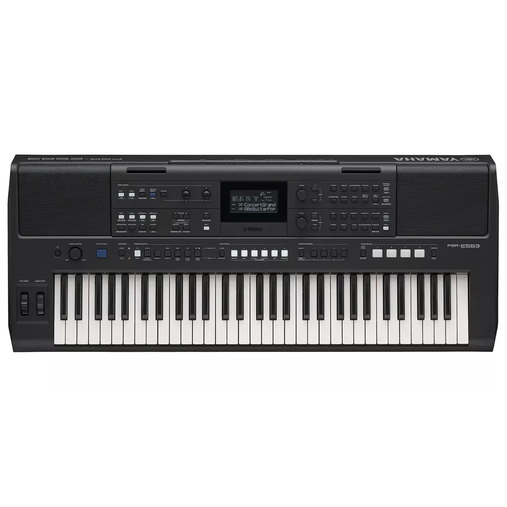 Yamaha PSR-E583Výkonný studentský digitální keyboard s 61 dynamickými klávesami, 64hlasou polyfonií a rozšířenou zvukovou výbavou 890 realistických zvuků včetně 19 Super Articulation Lite Voices. Nabízí 345 doprovodných stylů, bohaté DSP efekty, arpeggiátor, Motion Effect a Looper pro kreativní hraní i moderní produkci. Oproti nižším modelům přidává modulační kolečko, vstup pro expression pedál a výkonnější ozvučení 2×12 W. Samozřejmostí je Quick Sampling, USB audio rekordér, USB-C audio/MIDI rozhraní, možnost připojení mikrofonu, stereo linkový výstup a široké možnosti připojení i rozšíření.
