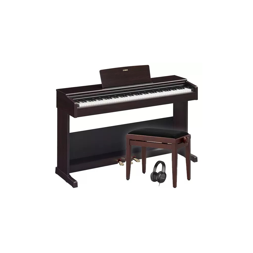 Yamaha YDP 105 R SET2Yamaha YDP 105 R SET1 je set digitálního piana se stoličkou a sluchátky. YDP 105B je digitální piano s vyváženou kladívkovou klaviaturou GHS. Skvělý nástroj pro začínající hudebníky či studenty ZUŠ. Nabízí klaviaturu se simulací kladívkového úhozu a výbornou kvalitu zvuku. Maximální polyfonie je 64 hlasů. Tři pedály (včetně Damper pedálu s funkcí Half pedal). K dispozici je deset základních zvuků, 4 typy reverbu, 10 demo a přednastavených skladeb. Umožňuje hrát dva zvuky současně (Dual) nebo i dvouruč. Konektor USB to Host slouží pro připojení nástroje k počítači. Barevné provedení je tmavý palisandr (R – Rosewood).