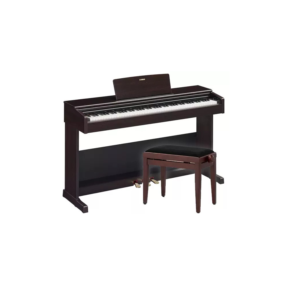 Yamaha YDP 105 R SET1Yamaha YDP 105 R SET1 je set digitálního piana se stoličkou. YDP 105 R je digitální piano s vyváženou kladívkovou klaviaturou GHS. Skvělý nástroj pro začínající hudebníky či studenty ZUŠ. Nabízí klaviaturu se simulací kladívkového úhozu a výbornou kvalitu zvuku. Maximální polyfonie je 64 hlasů. Tři pedály (včetně Damper pedálu s funkcí Half pedal). K dispozici je deset základních zvuků, 4 typy reverbu, 10 demo a přednastavených skladeb. Umožňuje hrát dva zvuky současně (Dual) nebo i dvouruč. Konektor USB to Host slouží pro připojení nástroje k počítači. Barevné provedení je tmavý palisandr (R – Rosewood).