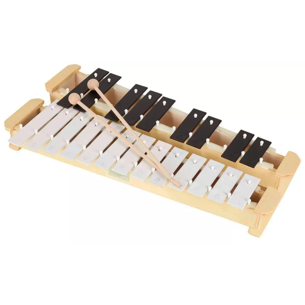 chromatická zvonkohra pro pokročilé otevřené provedení rozsah c3–a4 (sopránová) 13 bílých + 9 černých kamenů šířky 25 mm součástí dodávky: 2 paličky